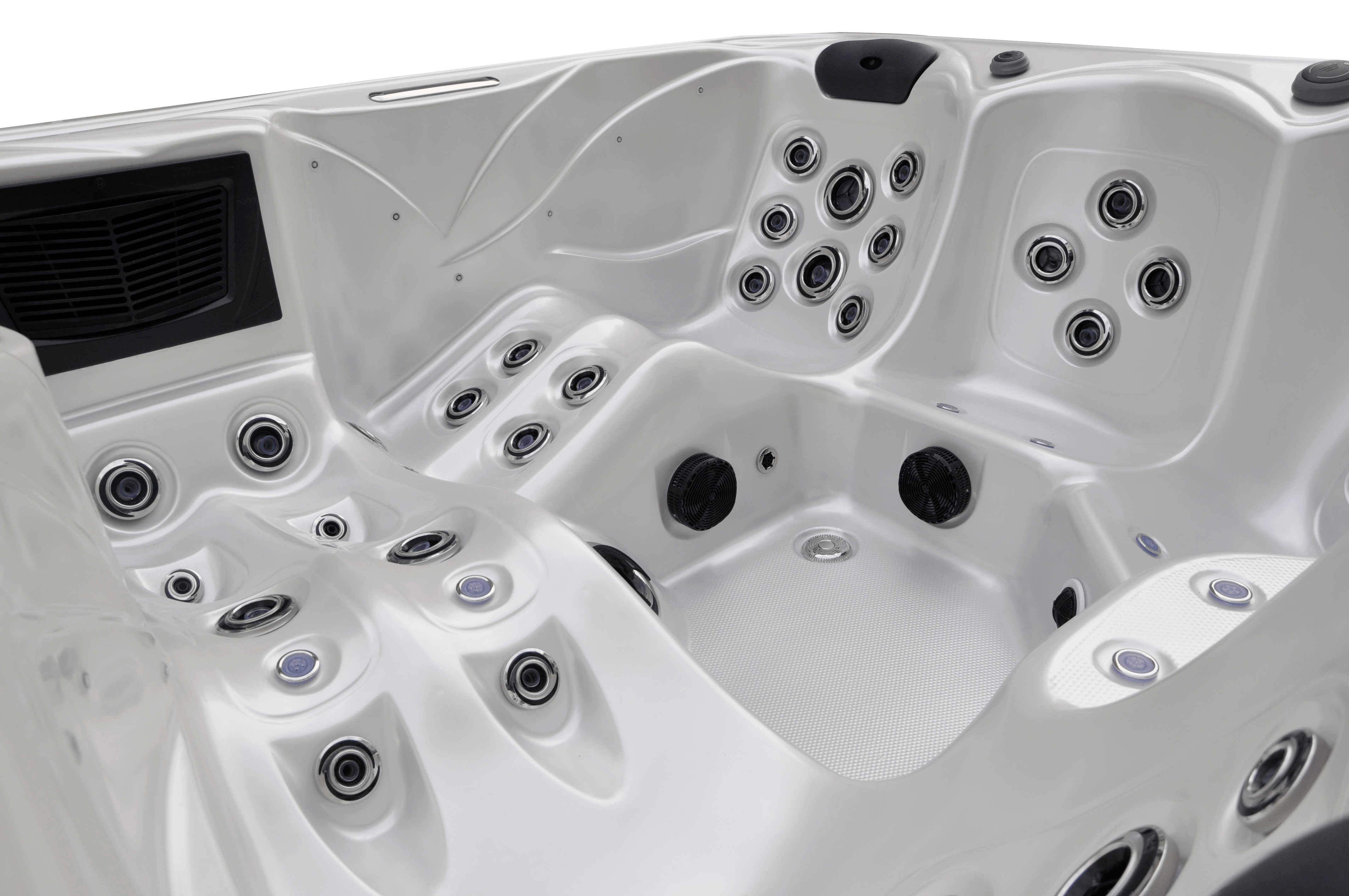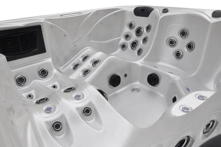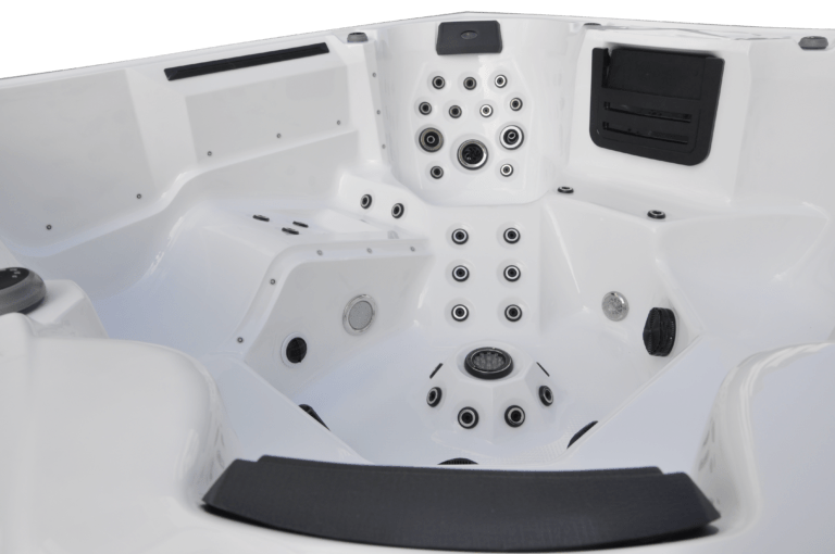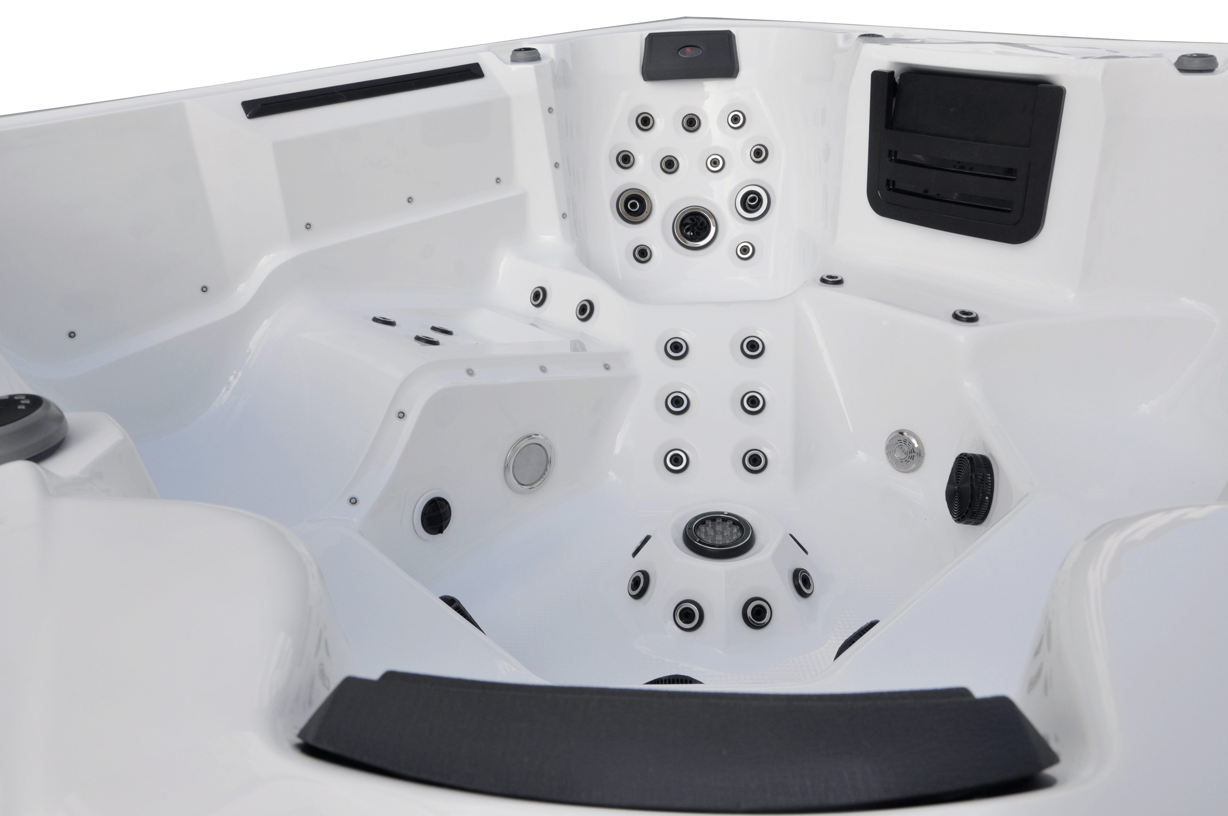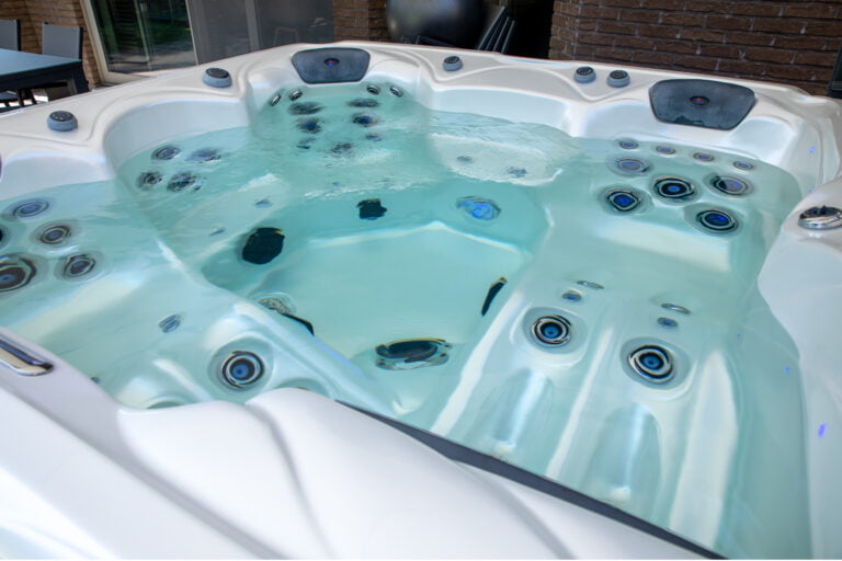 Dankzij de LED-verlichting geniet je dag en nacht van de heerlijke ontspanning die de Kos-jacuzzi aan je tuin toevoegt.