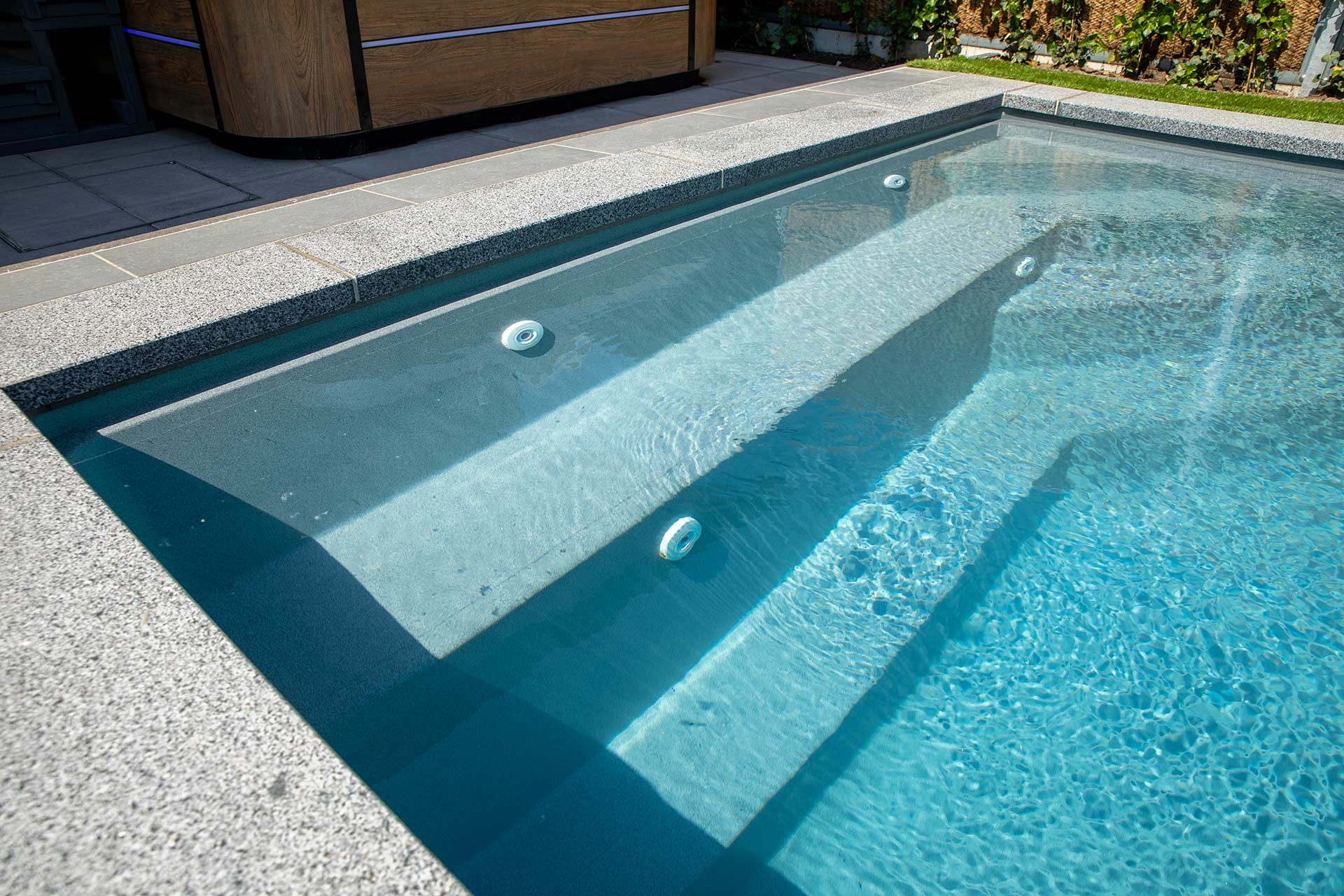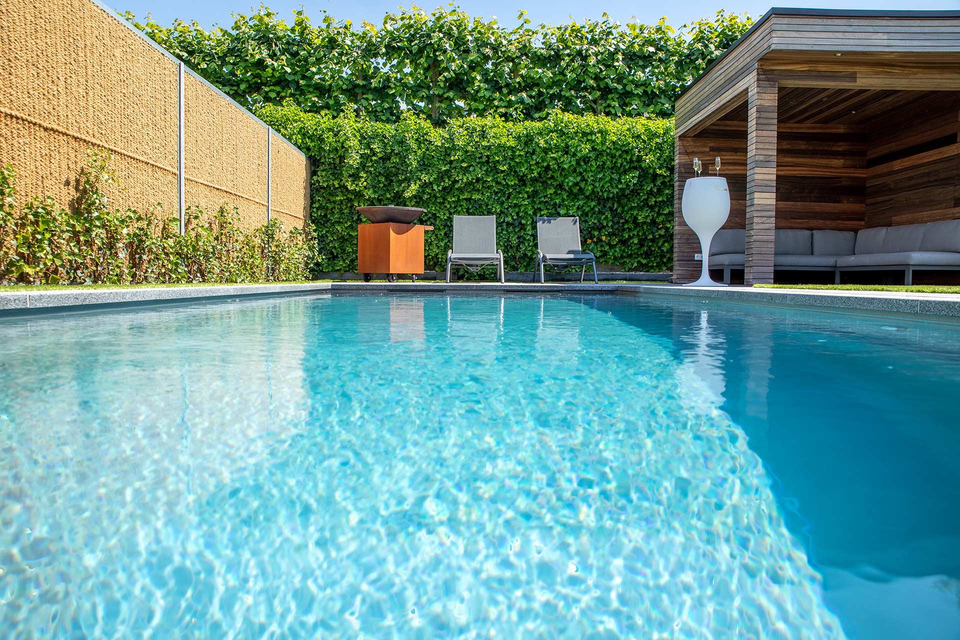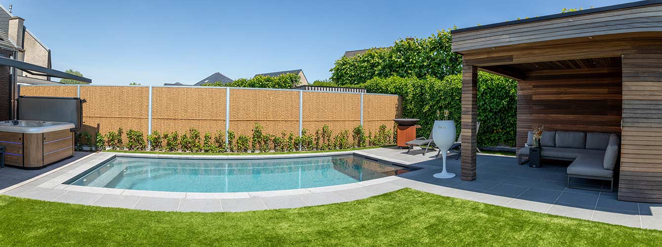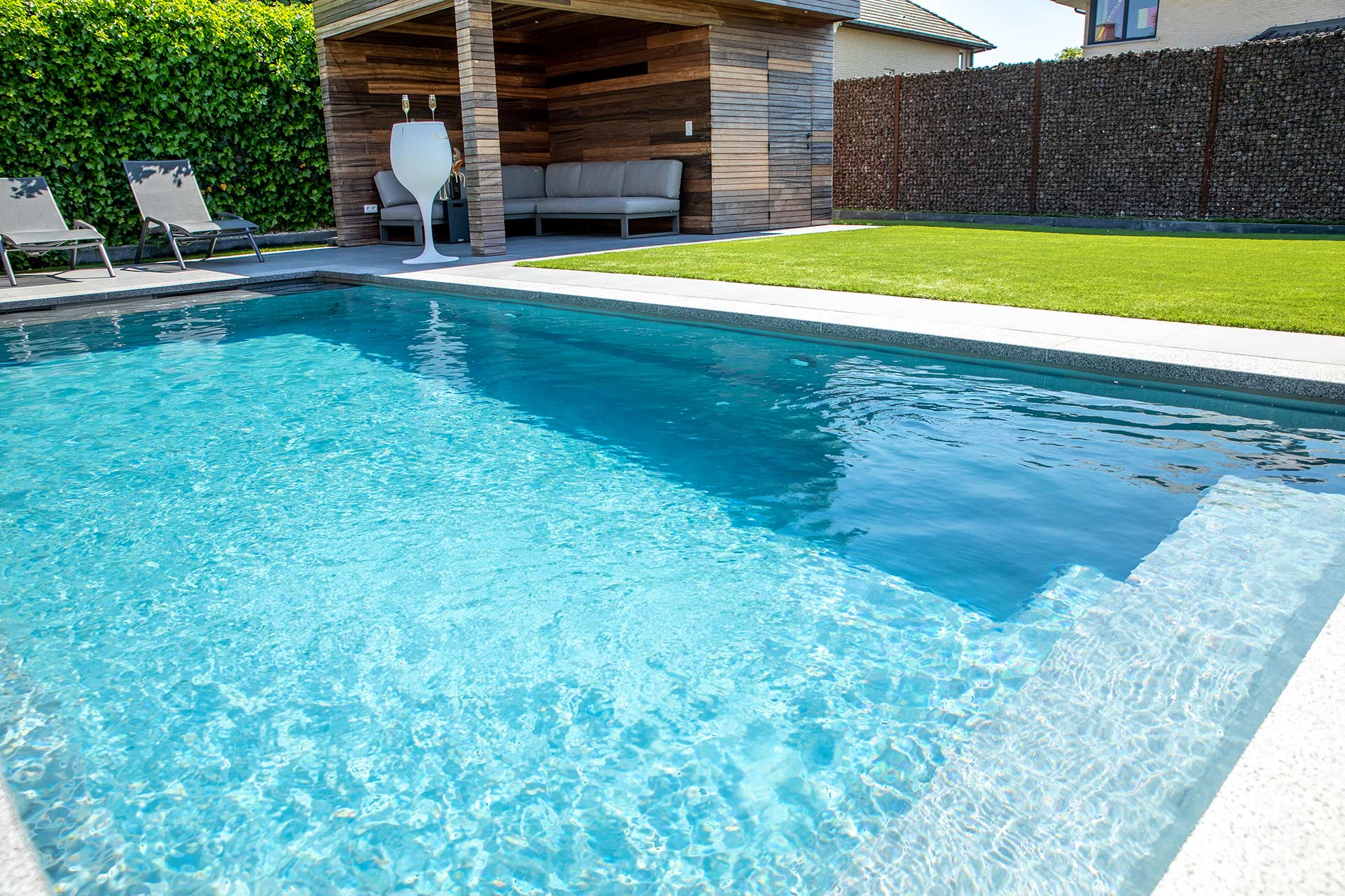 Het hart van deze tuin is het indrukwekkende Pacific-model zwembad. Met afmetingen van 7.5 meter lengte, 3.4 meter breedte en 1.5 meter diepte, biedt dit zwembad de perfecte ruimte om verkoeling te zoeken op warme zomerdagen. Naast het zwembad is er de prachtige poolhouse, een ware blikvanger in deze buitenoase.