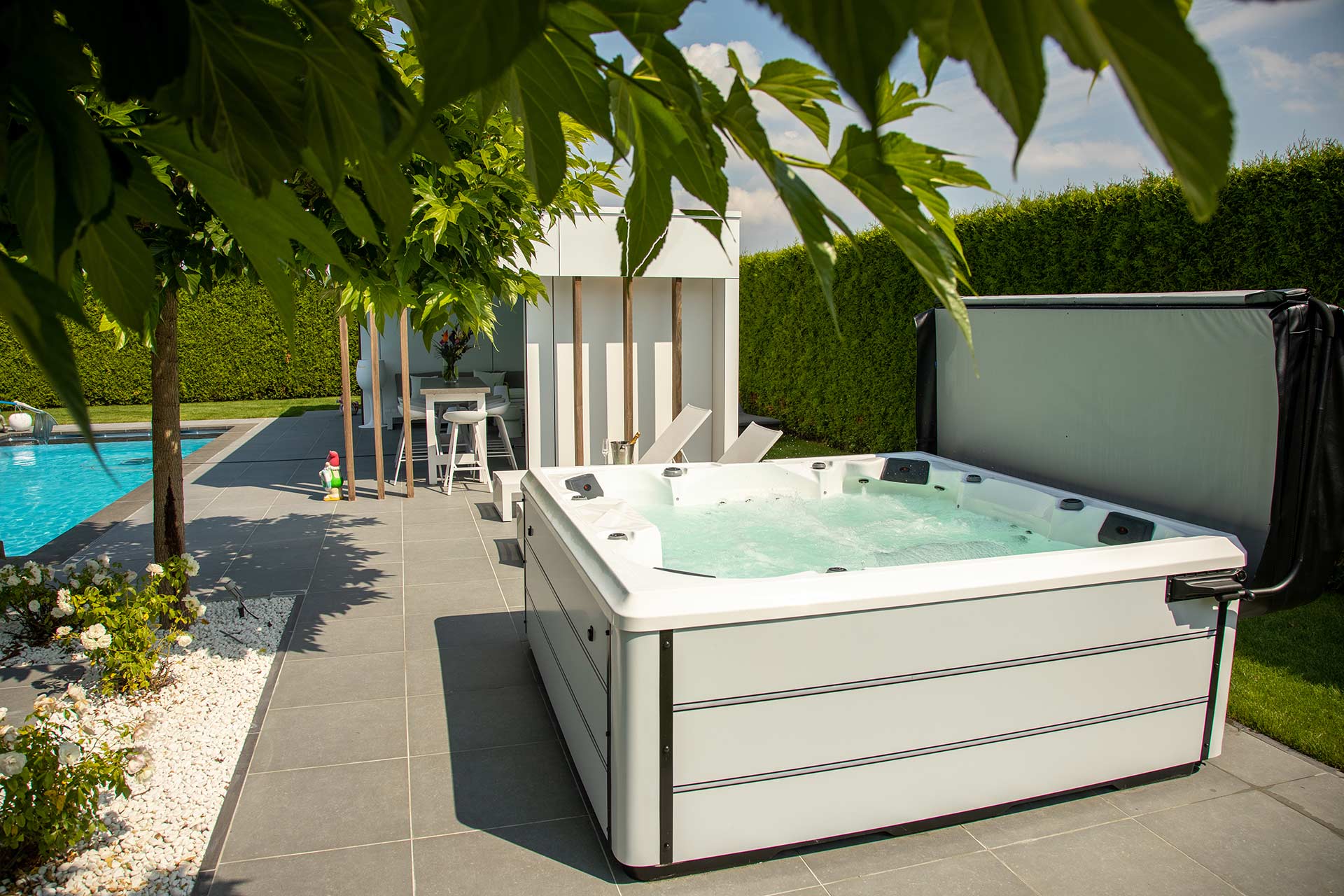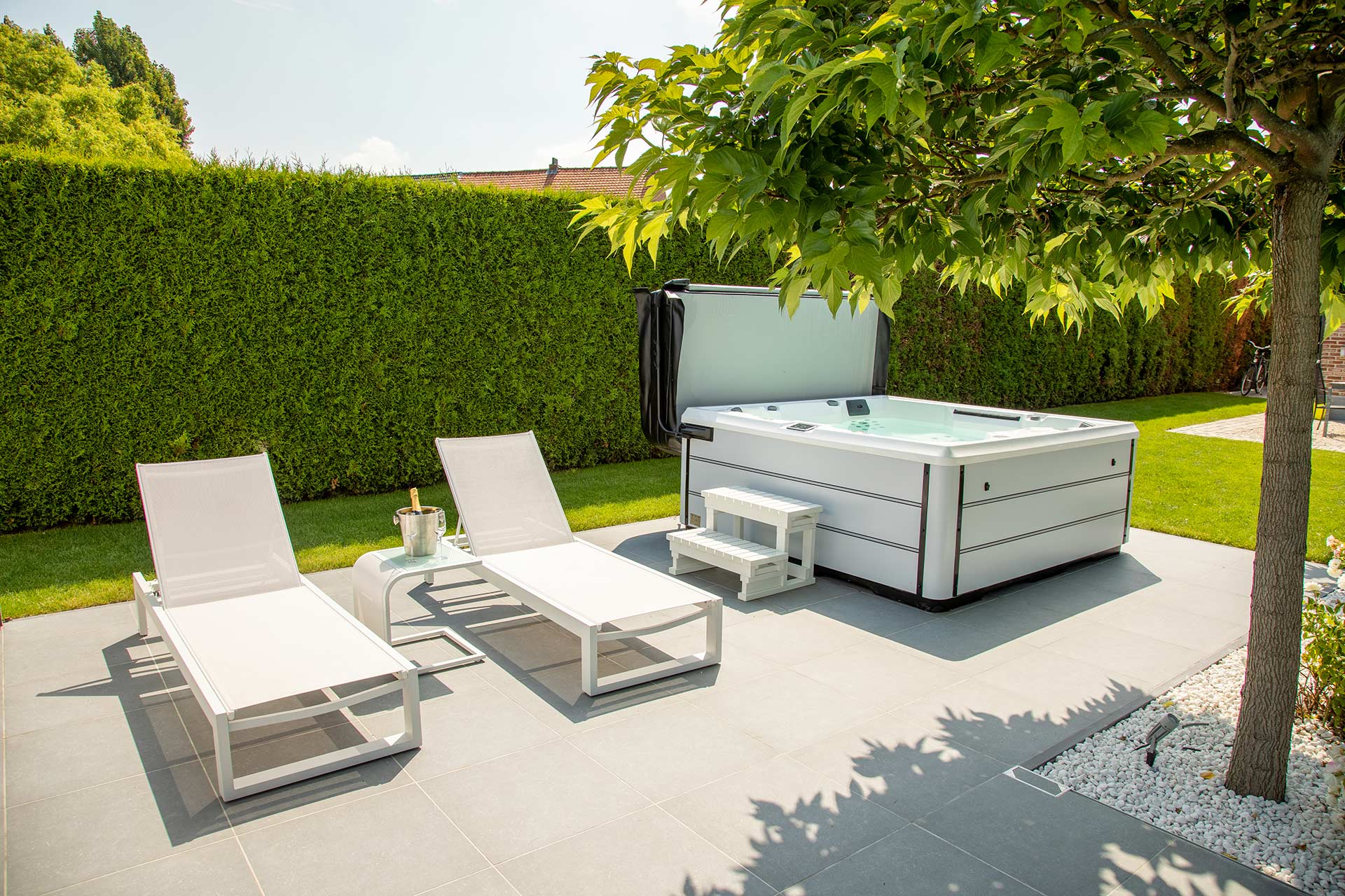 We werkten een totaalproject uit, met de aanleg van een prachtig zwembad als centraal punt. We vervolledigden het ontwerp op maat met een prefab poolhouse en ontspannende jacuzzi. We werkten de tuin af met smaakvolle tegels en een groene toets door de graszoden.